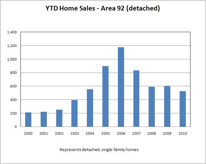 | Area 92 | Sales (detached) | Med Sale Price | Avg Sale Price | Avg Price/SqFt |
