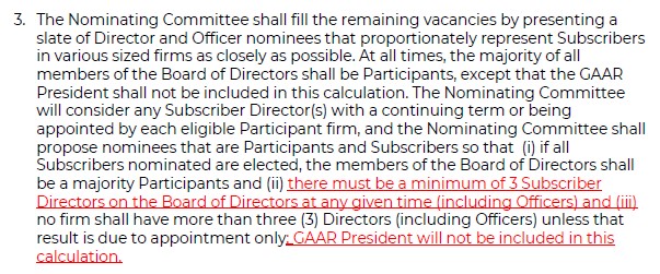 As per the SWMLS Bylaws, the SWMLS Board must maintain a majority of Participants over Subscribers but preserves dedicated seats for Subscribers to ensure their perspective is maintained. This further clarifies that the GAAR President does not affect the Firm or Participant/Subscriber count.