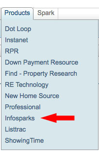 As a SWMLS user, you are now able to access both tools directly from Flexmls. Simply hover over ‘Products’ and select ‘Infosparks.’