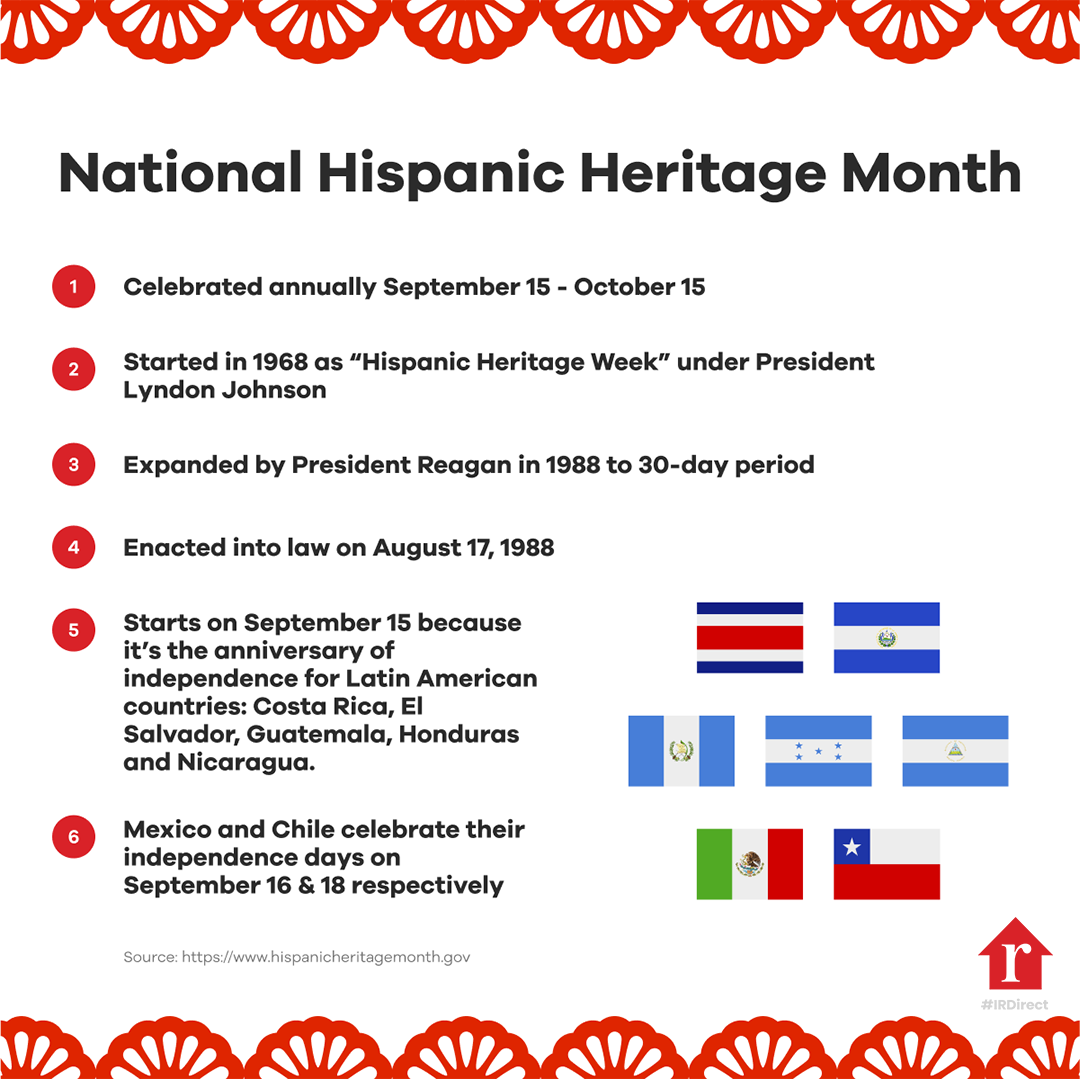 Hispanic Heritage Month begins on September 15 because it coincides with the independence days of several Latin American countries: