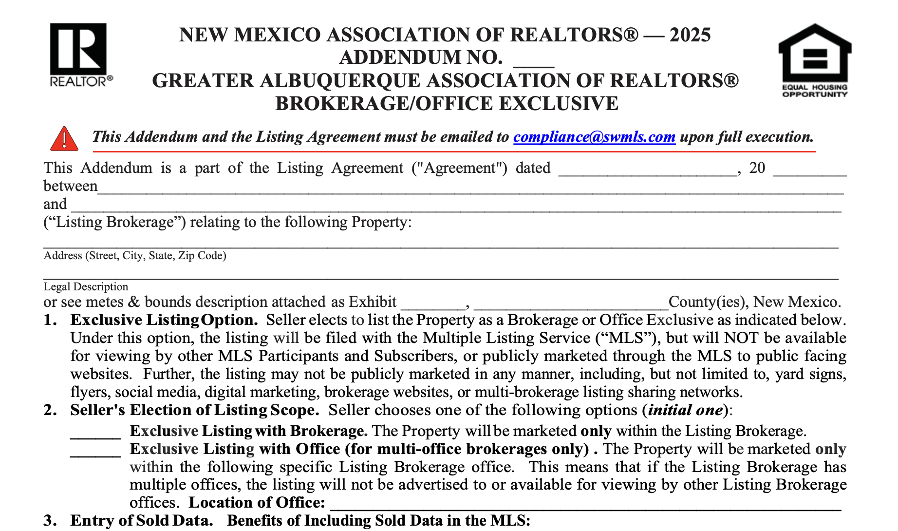 FORM: GAAR/SWMLS Brokerage Office Exclusive Addendum
