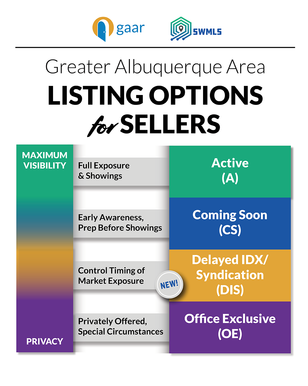 - Educate your brokers and staff on the four listing options — Active (A), Coming Soon (CS), Delayed IDX/Syndication (DIS), and Office Exclusive (OE) — and when each is appropriate.