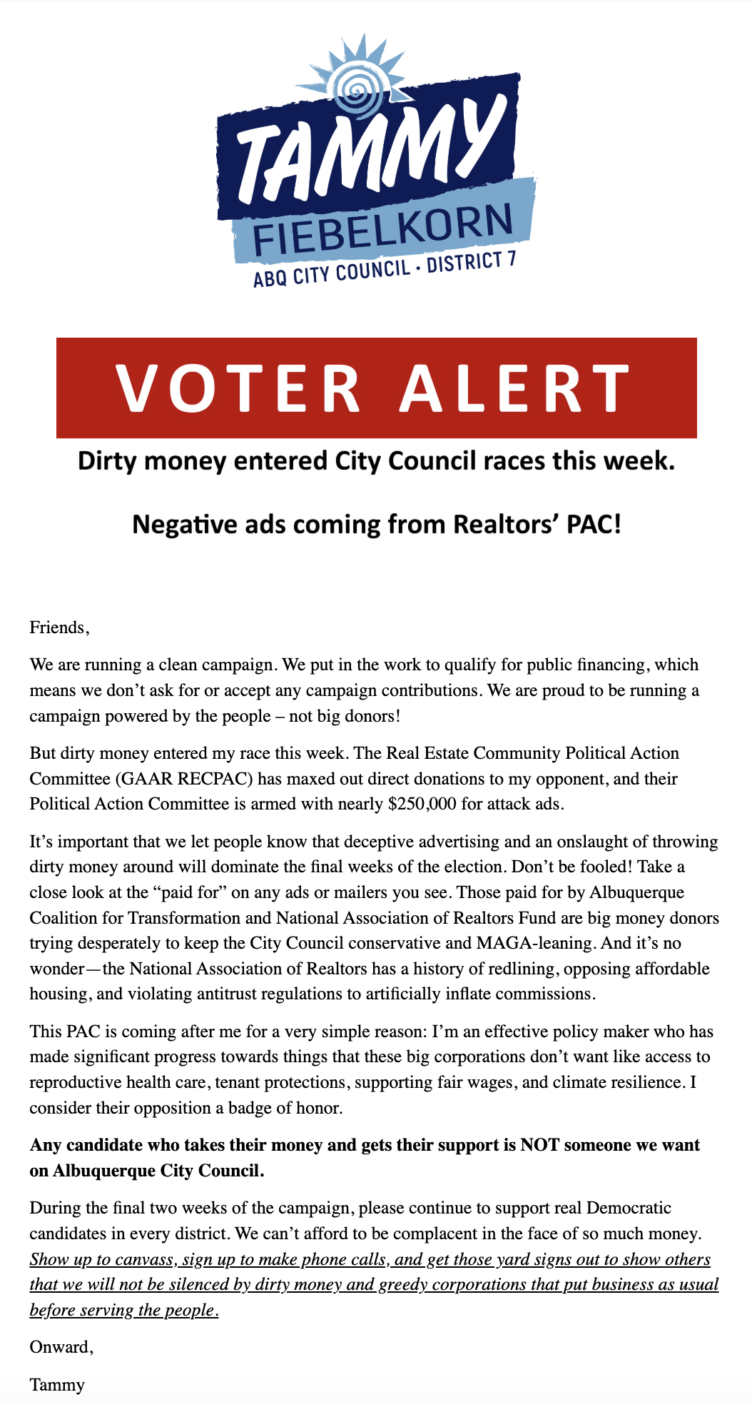 Labeling lawful and transparent participation as “dirty money” doesn’t just misrepresent our members—it discourages civic engagement and distracts from the real work of addressing Albuquerque’s housing challenges.