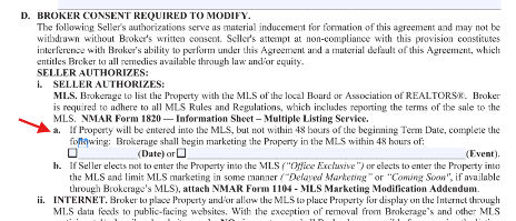 Previously, MLS rules required entry within 48 hours of signatures, even if the listing agreement specified a different start date. This created a conflict between MLS policy and the contract brokers are required to follow.