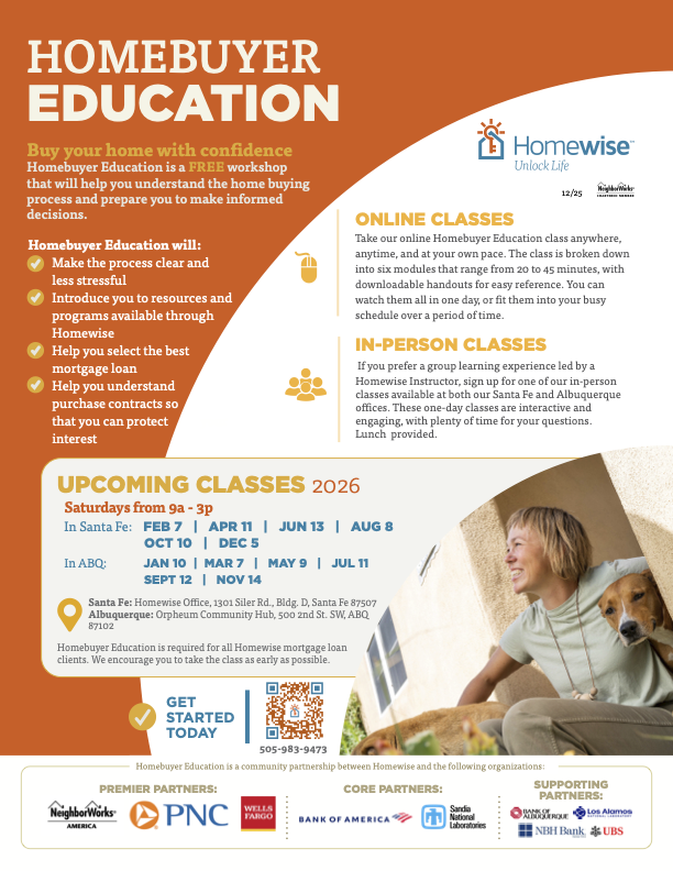 Homewise is a New Mexico–based nonprofit dedicated to making homeownership more accessible and sustainable. Through financial education, credit repair support, and affordable financing options, Homewise helps individuals and families prepare for, achieve, and maintain successful homeownership at every stage of the journey.